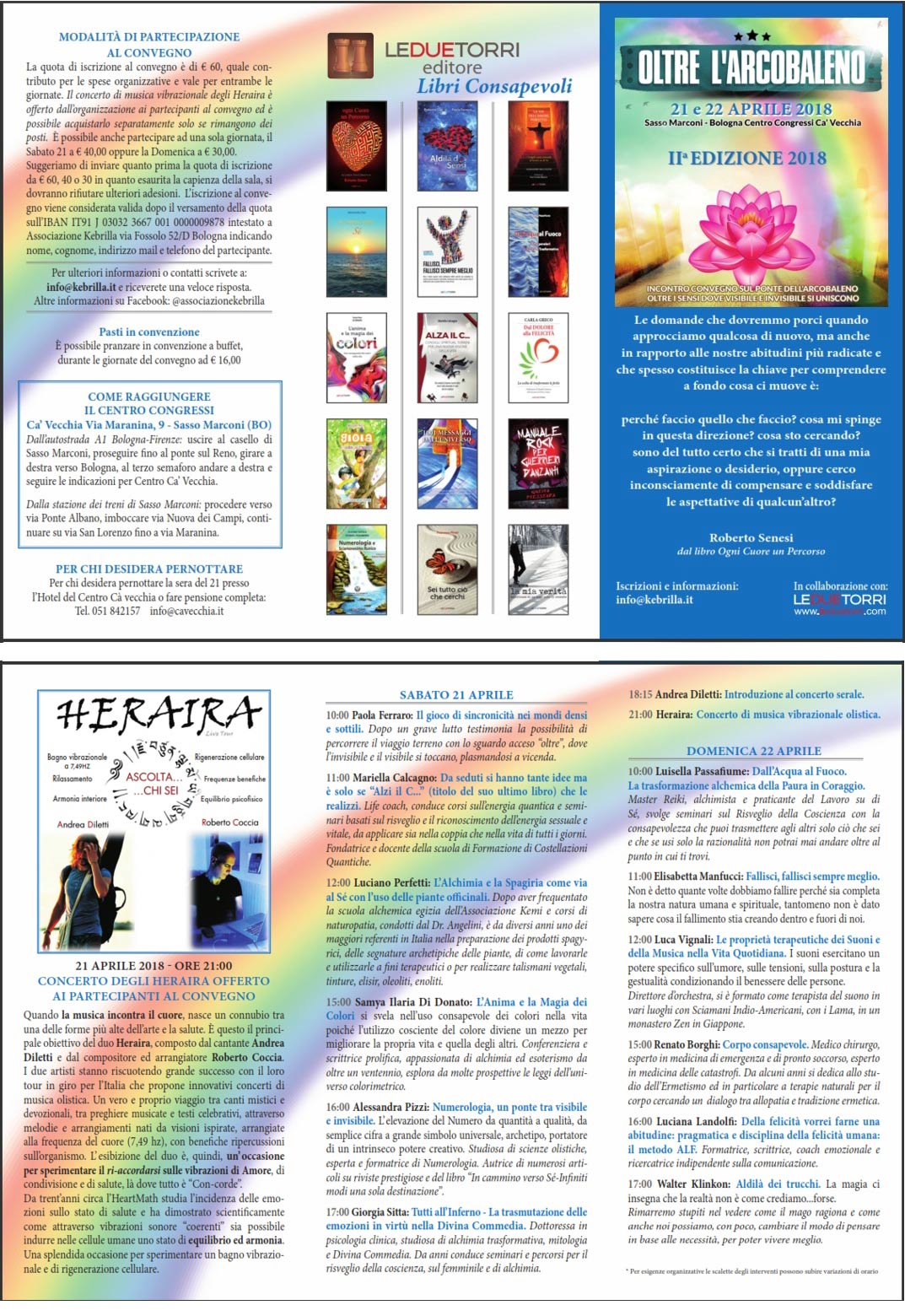 Organizzato dall’associazione Kebrilla e LE DUE TORRI editore è in arrivo un evento straordinario, che unisce differenti relatori con percorsi ed esperienze diverse nell’incontro-convegno “sul ponte dell’Arcobaleno”, in due giornate all’insegna del viaggio verso Sé.